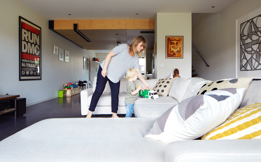 “Open plan living and low maintenance is our number one rule. To not feel boxed in. And the light. It reflects how we like to live. I like to be in the kitchen and to see the lounge. You want to all be in the same room, not separated by walls. Will ‘cuts laps’ in the house! He’s learnt to walk and run here. Milestones have happened here. There is so much space. He has a great time with all the other kids around. He’s the youngest so he still observes more than anything else”.
