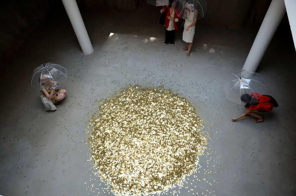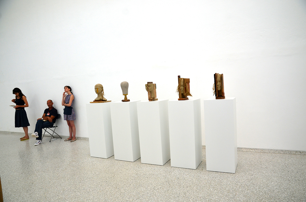 In a beautiful open space at the end of the Arsenale, Bruce Nauman’s video installation Raw Material with continuous shift – MMMM (1991) was showing. It called out for the audience to move with it, but of course, only our two-year-old daughter Rozsa took up the challenge. She spun around and around, imitating Nauman’s head, giggling uncontrollably. People stopped and laughed – a warmth and connection amongst passers by. The Encyclopaedic Palace exhibition was gargantuan. Coming back to Australia, trawling through my documentation and reading about the Biennale, I wondered about the amount of work shown and the desperate need we all felt to “get through it” in such a limited amount of time. Meticulously and ambitiously curated by Massimiliano Gioni, his curatorial motivation seemed to reflect our “desire to see and know everything, and the point at which this becomes an obsession.” (Massimiliano Gioni, taken from the exhibition catalogue)
